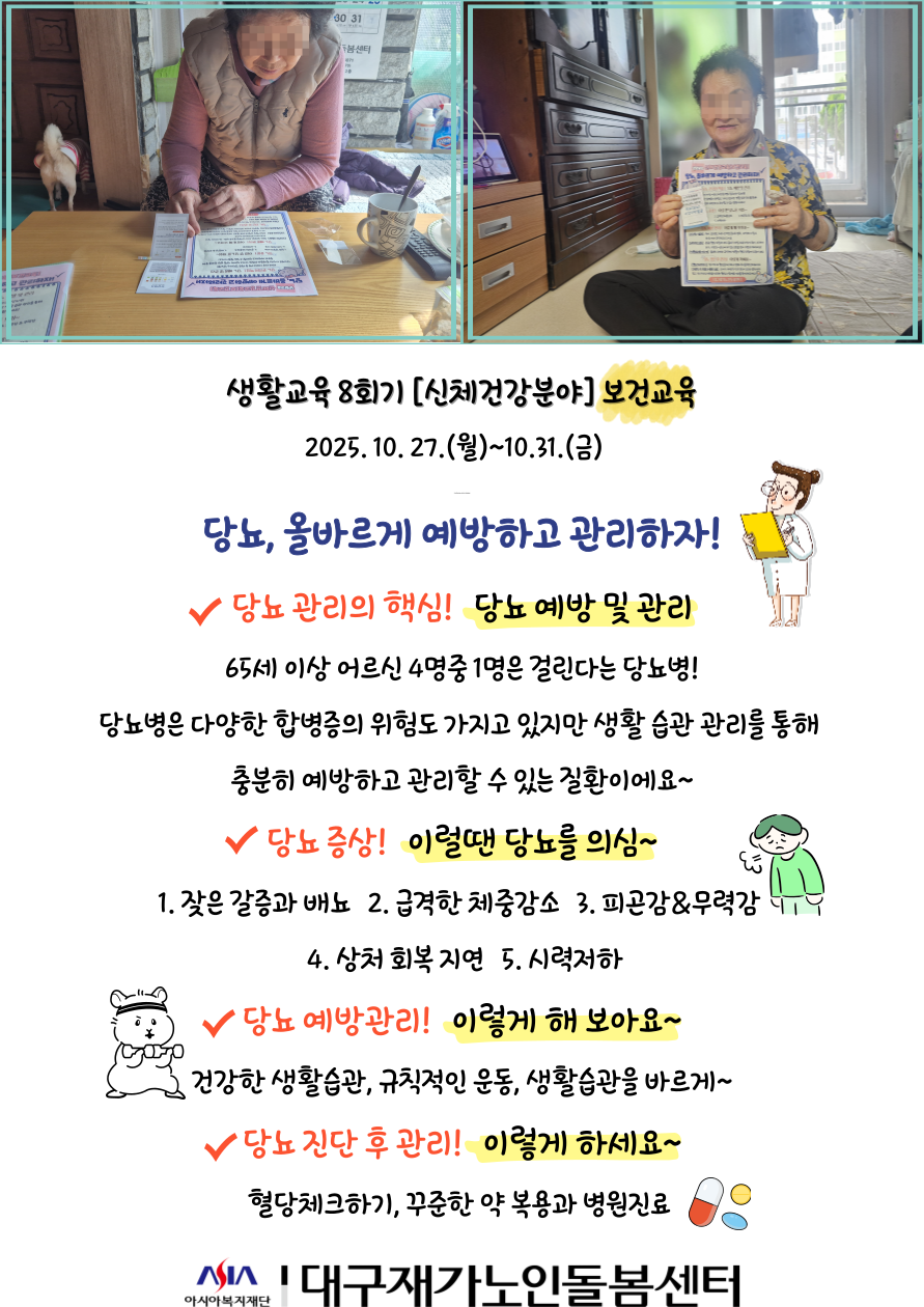 시설소개 재가노인지원서비스 노인맞춤돌봄서비스 정보마당 후원/자원봉사 인사말 법인소개 연혁 조직도 오시는 길 공지사항 갤러리 후원 안내 자원봉사 안내 시설소개 인사말 법인소개 연혁 조직도 오시는 길 재가노인지원서비스 노인맞춤돌봄서비스 정보마당 공지사항 갤러리 후원/자원봉사 후원 안내 자원봉사 안내 정보마당 시설소개 재가노인지원서비스 노인맞춤돌봄서비스 정보마당 후원/자원봉사 갤러리 공지사항 갤러리 갤러리 [맞돌] 생활교육-신체건강-보건교육 맞춤돌봄, 2026-01-18 ( 조회수 9 )