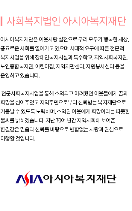 시설소개 재가노인지원서비스 노인맞춤돌봄서비스 정보마당 후원/자원봉사 인사말 법인소개 연혁 조직도 오시는 길 공지사항 갤러리 후원 안내 자원봉사 안내 시설소개 인사말 법인소개 연혁 조직도 오시는 길 재가노인지원서비스 노인맞춤돌봄서비스 정보마당 공지사항 갤러리 후원/자원봉사 후원 안내 자원봉사 안내 시설소개 시설소개 재가노인지원서비스 노인맞춤돌봄서비스 정보마당 후원/자원봉사 법인소개 인사말 법인소개 연혁 조직도 오시는 길 법인소개